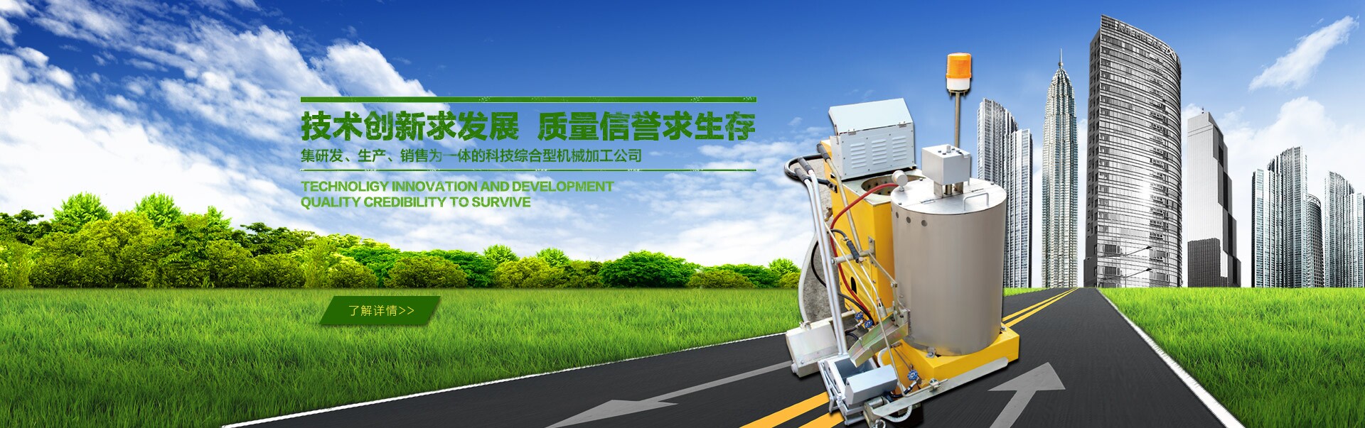 公司自成立以來,秉持市場需求為導向,技術創(chuàng)新為基礎,質量信譽為主的原則,成功開發(fā)出標線施工機械、融雪劑撒布機、道路清掃機等一系列全新的作業(yè)機械并獲得多項國家專利。“誠信立足,創(chuàng)新致遠”的企業(yè)理念,分別于2009年、2011年為我公司贏得了“全國質量誠信AAA級品牌企業(yè)”和”全國十佳誠信單位”的光榮稱號。2013年,我公司在自主研發(fā)創(chuàng)新產(chǎn)品的道路上邁出了重要的一步,被山西省新技術推廣中心評定為20 14年新技術重點推廣單位。